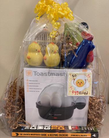 Enter for a chance to win a chick themed adult raffle! Prize includes egg cooker, egg slicer, microwave omelet maker, & more!