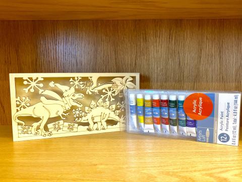 Start your holiday celebration with this fun craft! Paint your own wood Christmas dinosaur box! You can use your imagination to make this fun holiday decoration come to life! Paint is included and the box lights up!
