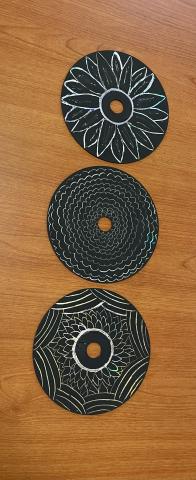 Make your own scratch art using a repurposed CD and black acrylic paint.