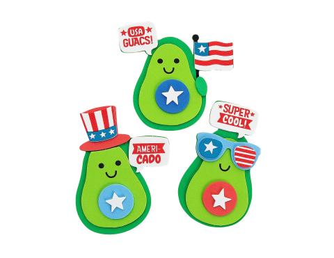 This craft features a smiling avocado with images and messaging that celebrate the USA.