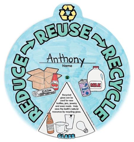 Learning about recycling has never been more fun! This Recycling Wheel shows the basics of recycling glass, paper, cardboard, plastic, aluminum and compost. Use crayons, colored pencils or markers to create a unique tool to celebrate Earth Day!