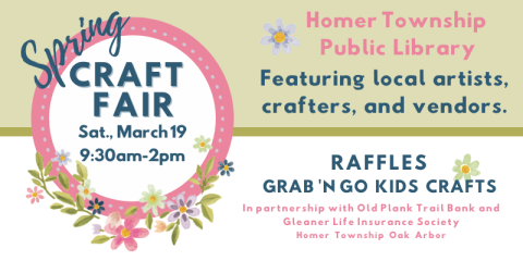 Mark your calendar for this exciting craft-filled event featuring local artists, crafters, and vendors! Highlights include raffles, grab 'n go kids crafts, and more!