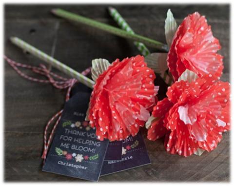 Use washi tape and cupcake liners to create cute flower pencils!