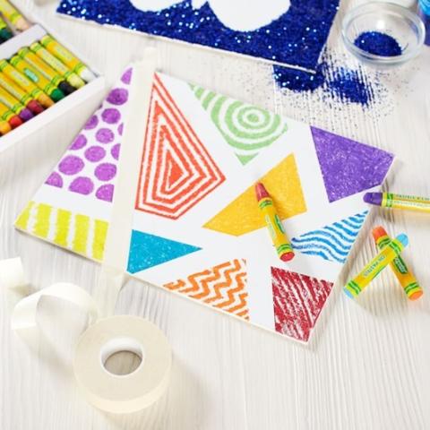 Craft a cool, geometric “reveal” artwork. Using tape on a canvas, decorate with oil pastels to create a unique picture to take home.