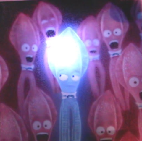 Using copper tape and surface-mount LEDs, make a light-up greeting card featuring the squids from the movie, Sing.