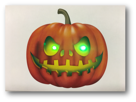Light up an Evil Pumpkin card using LEDs and copper tape to create a parrallel circuit. Limit 12.