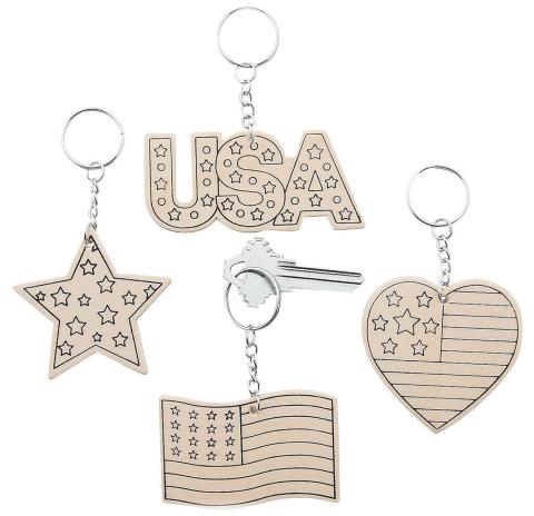 Hooray for the U-S of A! Use your favorite shades of red, white and blue to bring your wooden keychain to life!