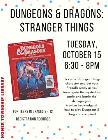 Pick your Stranger Things character and get your fireballs ready as you investigate the mysterious castle and battle the demogorgon. Previous knowledge of how to play Dungeons & Dragons is required.