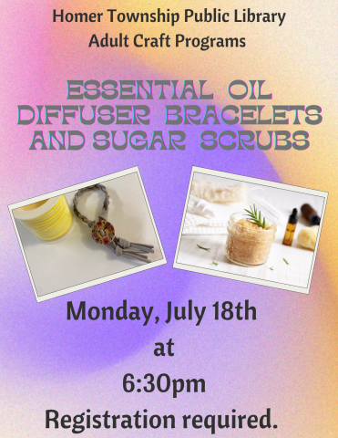 Relax and rejuvenate with this essential oil craft night! We will be making vegan-leather diffusing bracelets and sugar scrubs! Take some time out for yourself and unwind.