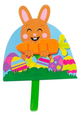This happy little bunny is hungry! Craft a festive background, add a carrot to a stick, then lift the bunny’s carrot to his mouth.