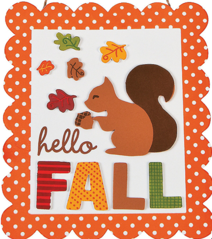 Create a seasonal sign featuring fall-inspired colors and a little squirrel. Hang your sign on the front door to welcome guests!