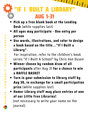 - Homer Library staff may place entries at one of our Little Free Libraries! (Not necessary to write your name on the journal).