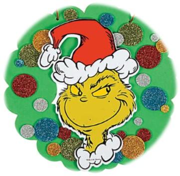 Craft features the Christmas stealing green monster. Add glitter circles then use it for a fabulous holiday decoration!