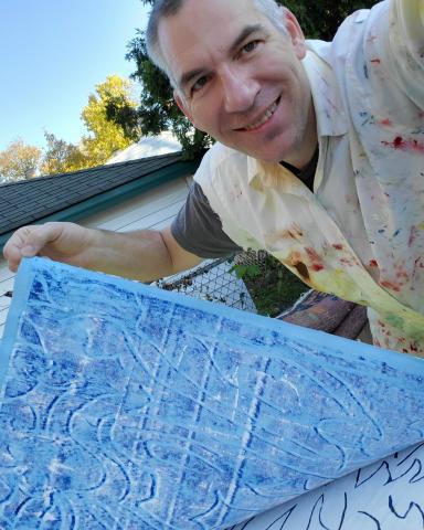 Benjamin has exhibited his works in solo, juried, and group exhibitions and is an instructor at the Elmhurst Art Museum and DuPage Art League. In the summer of 2021, he took part in a public exhibition with the Illinois State Museum called “Lockport Ducks” in which he decorated a 3 foot tall fiberglass duck and they were on display throughout downtown Lockport (his was outside of the Vegan Café, to view, vist www.lockportducks.com). He has won awards for his artwork and currently, thru March 18, 2022, Benjamin has 63 prints at the Wadsworth Family Gallery at Lewis University (One University Parkway, Romeoville, IL 60446). You can view his website at www.benjamincalvert.com.