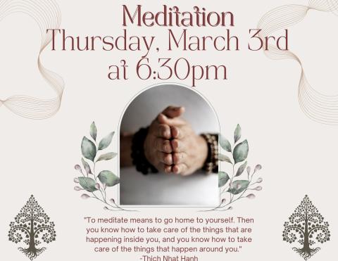 Take a moment to reconnect with yourself. Join us for a relaxing night of meditation. No matter where you are in your meditation journey, this will be a relaxing night for all.