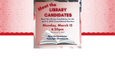 Meet the Library Candidates for the April 4, 2023 Consolidated Election. Enjoy light refreshments.