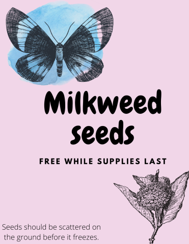 pick upi free milkweed seeds at the help desk! No registration - -just stop by the library! While supplies last.