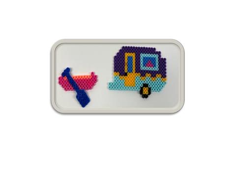 Set up camp for some summer fun! Melt colorful perler beads to create a canoe and camper.