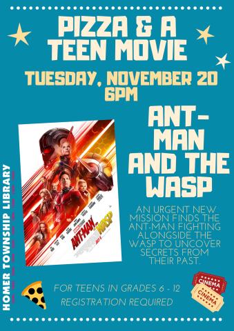 Watch ANT-MAN AND THE WASP on our big screen while stuffing your face with pizza! Rated PG-13. 118 minutes.