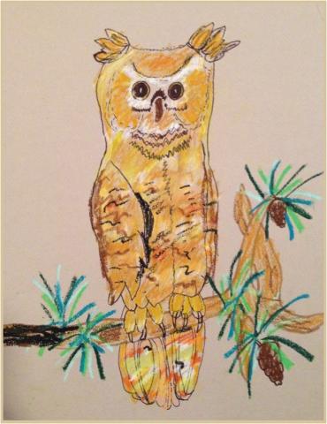 The Great Horned Owl - Learn to draw these night time hunters with oil pastel. They have tufts of feathers that look like horns or ears.