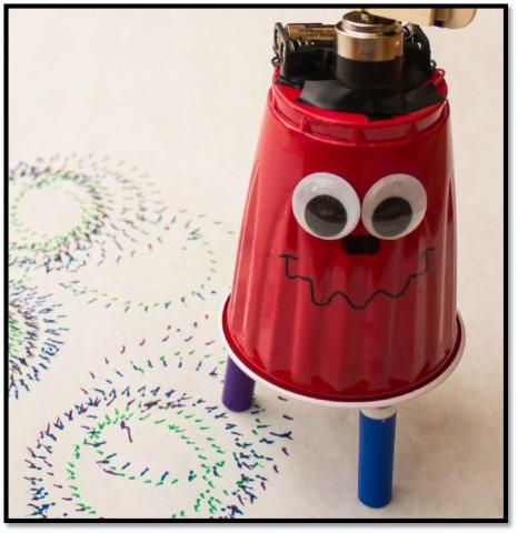 Create a Scribbling machine, a motorized contraption that moves in unusual ways and leaves a mark to trace its path. Build it with from simple materials and watch it go!