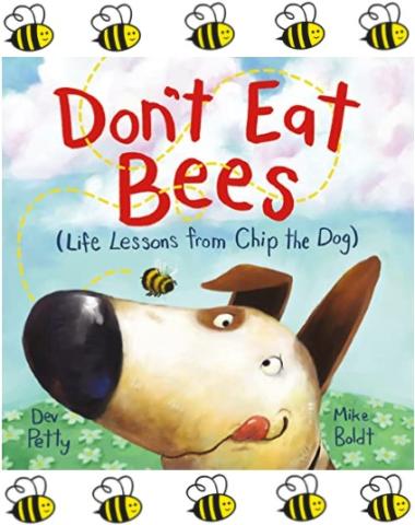 Pick up a StoryWalk Challenge sheet at the library. Go to Sendra Park, follow the path to read the StoryWalk book, Don’t Eat Bees (Life Lessons from Chip the Dog), look for bee symbols, fill in the answers on your form and do the activities with Libby & Barry.