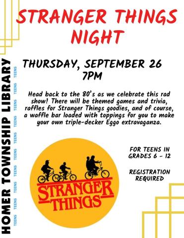 Head back to the 80’s as we celebrate this rad show! There will be themed games and trivia, raffles for Stranger Things goodies, and of course, a waffle bar loaded with toppings for you to make your own triple-decker Eggo extravaganza.