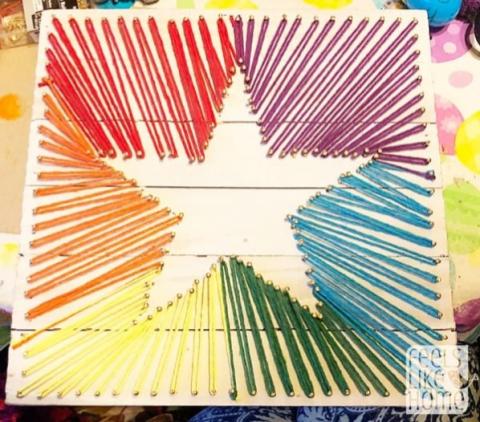 Use a hammer, nails and yarn to create this colorful star. A great addition to your room décor!