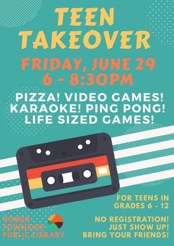Teens will be taking over the library at this special after-hours event! We’ll have pizza, ping pong, videos games, life-sized games, and karaoke! Since the library will be closed, we’ll have it all to ourselves, so bring your friends! For teens in grades 6-12. No registration required – just show up that night!
