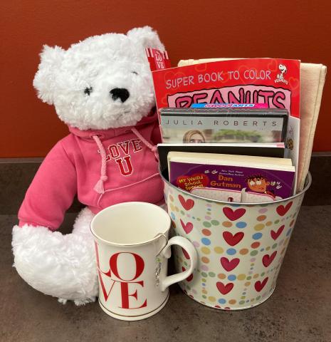 Enter for a chance to win a Valentine's Day themed family raffle! Prize includes a plush bear, books, tote bag, and more!