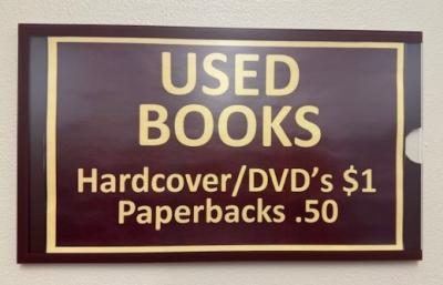 We gladly accept donations of books, CDs, and DVDs in good condition whenever the library is open.
